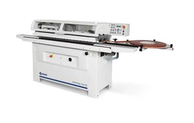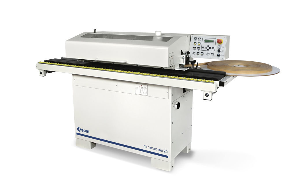 The glue is heated rapidly and evenly by the resistances. The automatic lowering of the glue temperature after a temporary halt in production when using the machine avoids burning of the glue. A new innovative system of self-lubrication of the glue pot, allows a more extensive use of the edge banding machine without the necessity of lubrication. Two rollers press the edge banding evenly and efficiently on to the panel edge. The glue spreading roller with electrical resistance inside provides a uniform glue spread and always at the maximum working temperature even on panels at the maximum working height.