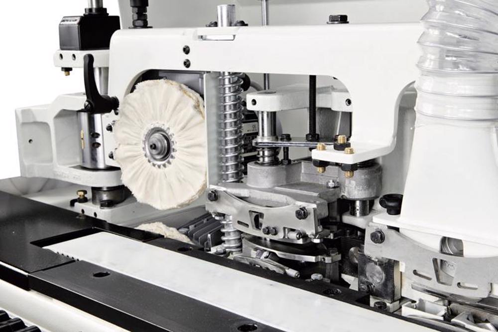 The very best finishing of the panel edge is also guaranteed by the panel conveying track (exclusive solution), which prevents the panel having the feed affected by the typical pulses generatedby the pinion of a traditional feed track and ensures a smooth and linear panel movement.