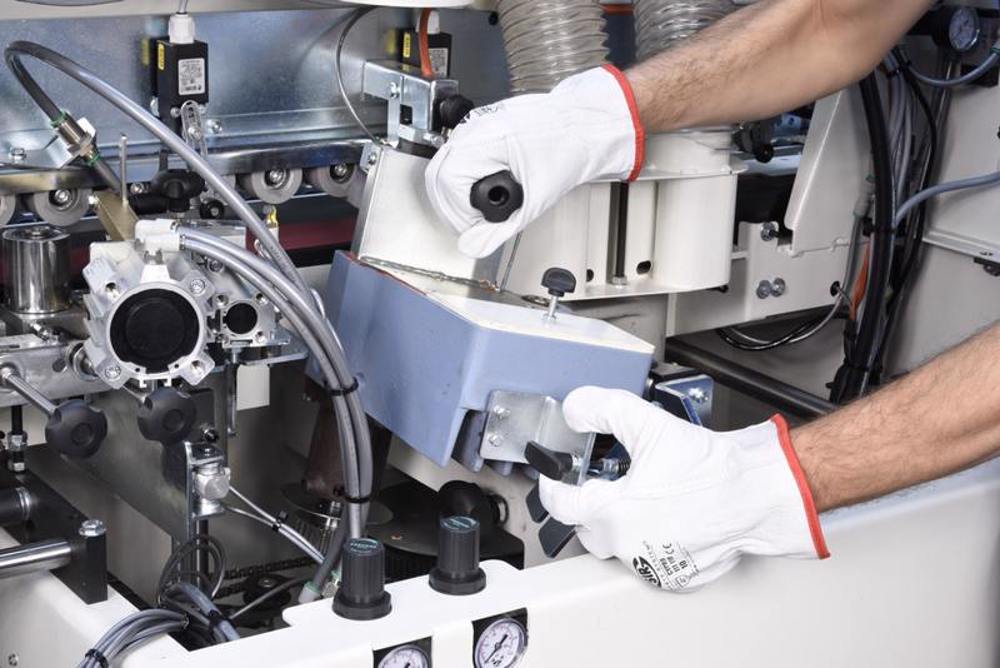High productivity edge bander with high quality performance. me 40tr, further enhanced compared to the previous version, with the new rounding unit that allows to obtain high quality finished products, without further processing, allowing a considerable saving of time and increasing ease of processing. It is confirmed as the most accessorizable machine in its technological range, with an excellent quality / price ratio. This edgebander increases productivity with the feed track of the panel brought to a speed of 9 m / min (the fastest in the minimax range) and guarantees high quality standards in processing thanks to the possibility of working with polyurethane glue, perform grooves, all being extremely easy to use.