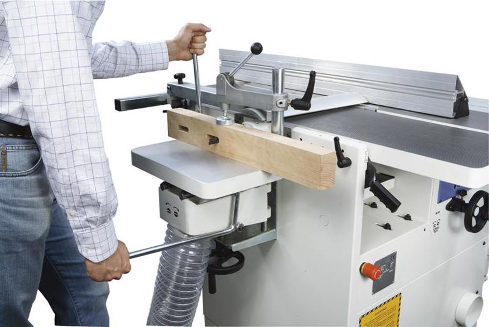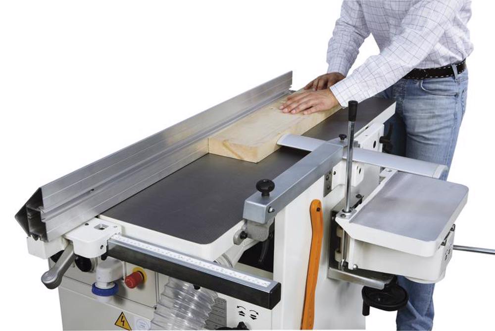 Rich CE safety devices, like the shaft protection to carry out shaping operation and working on curved profiles. The machining on the planer is very easy thanks to the large dimensioned surfacing tables.