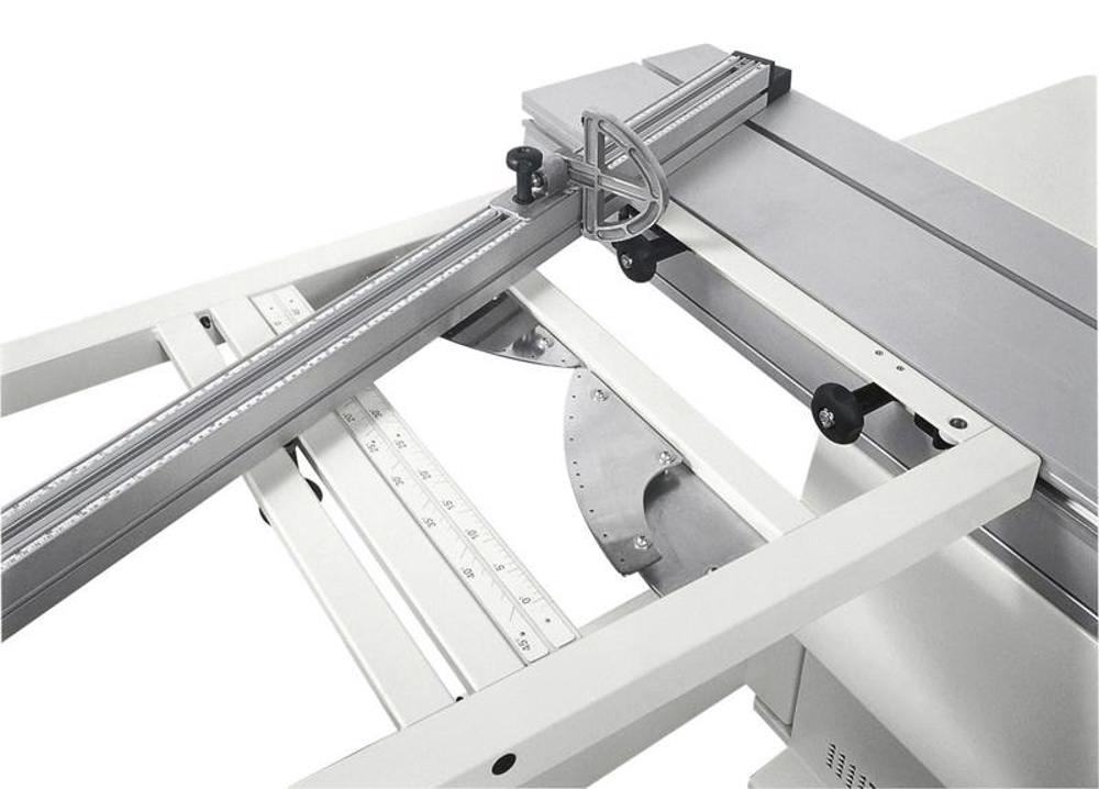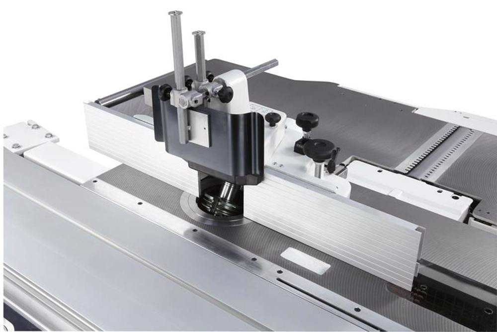 The new saw unit closed loop structure is made of a heavy cast iron and is supported firmly under the table by two lateral supports in a crescent shape. These solutions give strength and rigidity, guaranteeing perfect cutting results. The saw unit can be equipped, on request, with scoring blade for perfect cutting even on veneered panels. The scoring blade is an optional available in two versions: with belt transmission from the main motor and with an independent motor 0.75 HP (0.55 kW). The maximum diameter allowed for the main saw is 315 mm with scoring blade mounted.