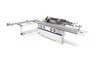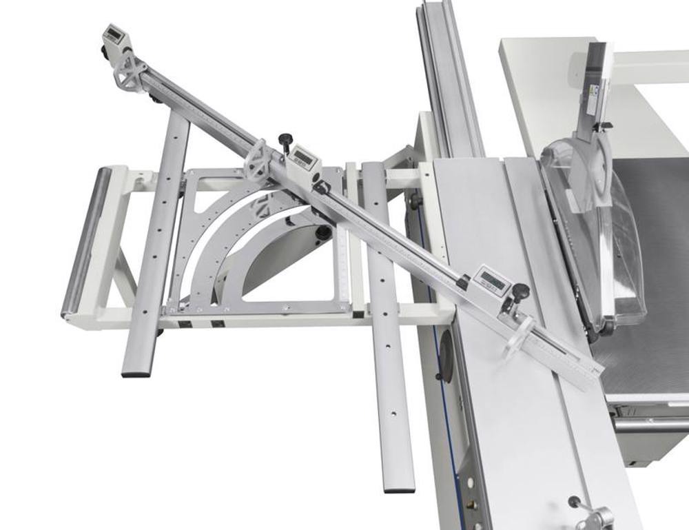 The new saw unit closed loop structure is made of a heavy cast iron and is supported firmly under the table by two lateral supports in a crescent shape. These solutions give strength and rigidity, guaranteeing perfect cutting results. The saw unit can be equipped, on request, with scoring blade for perfect cutting even on veneered panels. The scoring blade is an optional available in two versions: with belt transmission from the main motor and with an independent motor 0.75 HP (0.55 kW). The maximum diameter allowed for the main saw is 315 mm with scoring blade mounted.