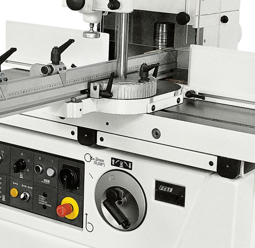 - Mișcare manuală pentru ridicarea arborelui suportului sculei completată cu afișaj numeric pentru detectarea înălțimii de lucru