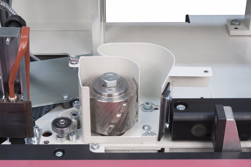 Grupul este complet cu freze combinate cu diametrul de 72 mm: partea rotunjită a muchiei de tăiere este utilizată pentru a tăia marginile de rază (2 mm) și canturi subțiri teșite; partea dreaptă a tăierii este folosită pentru tunderea cant de lemn de până la 5 mm. Pentru a folosi masina cu rotunjrea pentru cant cu raza sau cant drept pentru lemn, pur și simplu deplasați grupul in mod axial. Grosimea este indicată de 2 indicatori numerici.
