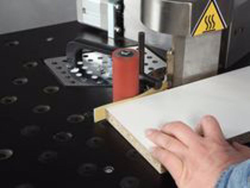 - Aplicarea adezivului pe cant prin unei role cu lipici motorizate