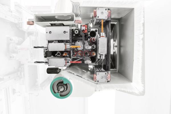 Grup de operare: constând în capul de gaurire cu 8 axuri verticale / 6 orizontale și panza integrata, plus electromandrina vertical (vers. R) cu schimbător manual de scule.