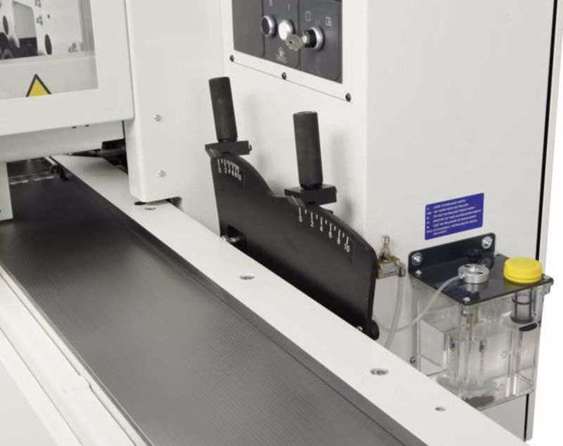 Ghidaj la intrare reglabil transversal cu ajutorul unui sistem paralelogram și complet cu sistem de pre-îndreptare prin intermediul unui freze pe arborele de rindeluit (sculă exclusă).